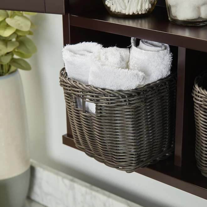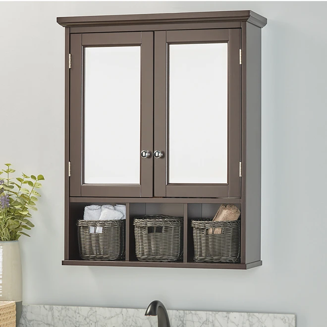 - Espresso Finish Surface Mount Medicine Cabinet Provides Extra Storage Space
