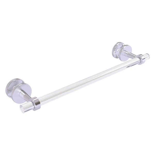 This beautiful shower door towel bar adds elegance and convenience to any bathroom decor. The towel bar features a towel bar on one side of the glass while decorative plates are provided for installation on the opposite side of the glass shower door or wall. Securely attaching to any glass surface, the towel bar complements your bathroom decor ranging from modern to traditional and all styles in between. Bold use of clear acrylic creates an almost hypnotic look against the solid brass construction.