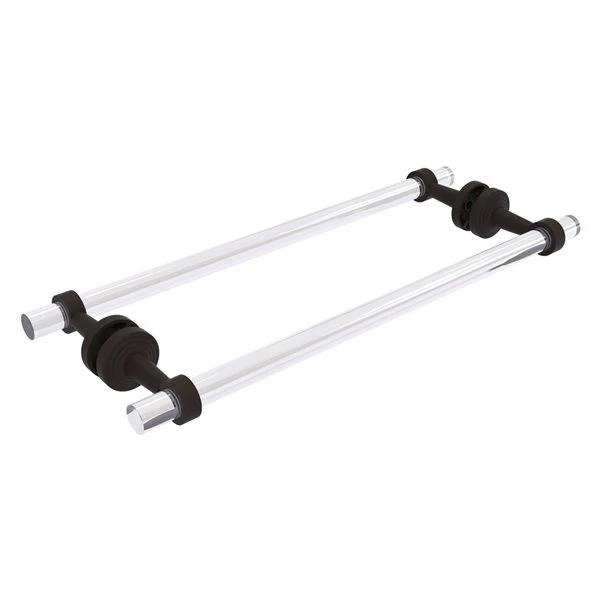 This beautiful back-to-back shower door towel bar adds elegance and convenience to any bathroom decor. The towel bar features identical bars for installation on both sides of glass shower doors or walls. Securely attaching to any glass surface, the towel bars complement bathroom decor ranging from modern to traditional and all styles in between. Bold use of clear acrylic creates an almost hypnotic look against the solid brass construction. Provided with your choice of any of our lifetime designer finishes, this stylish towel holder is extremely attractive yet highly functional.