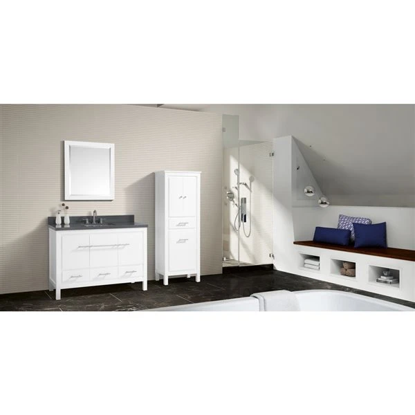 Add a contemporary touch to your bathroom with the Azzuri Riley decorative mirror by Avanity®. This product is manufactured from solid wood. It features a rectangular frame and white finish. Pair with the Azzuri Riley vanity for the complete look. Easy installation. One-year limited warranty.