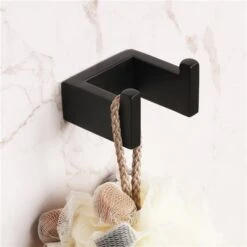 Clihome 4-piece Matte Black Bathroom Hardware Set – Paper Holder, Multi-Function Hooks And Towel Bar
