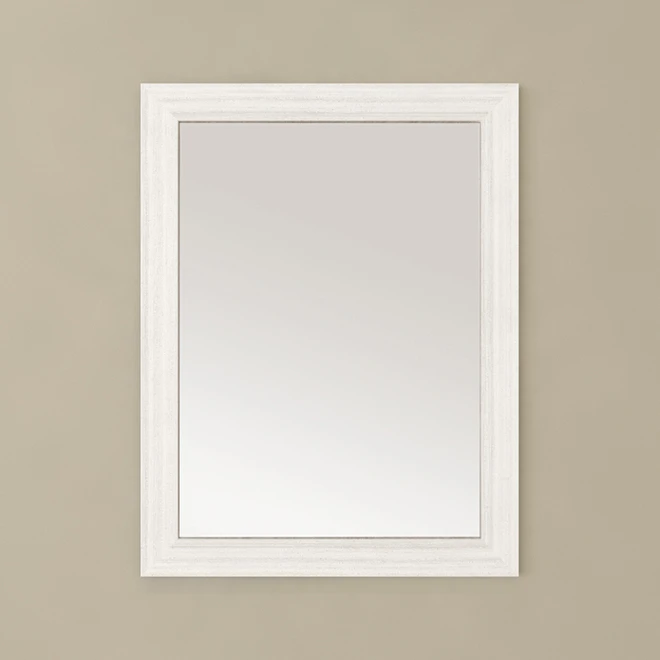Combine this mirror with any of the matching bathroom furniture from Cutler Forest’s Silhouette collection to create a stylish and coherent look for your bathroom. This 23-in x 30-in mirror with a sleek white frame can be installed horizontally or vertically depending on your preferences and available space. The product is covered by a 1-year limited warranty and comes with a hanging wire.
