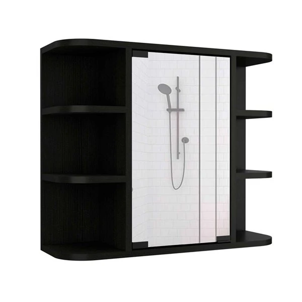 The Valdez medicine cabinet is an elegant, modern, functional and utterly simple mirrored medicine cabinet. It features a central cabinet with a single mirrored door (10.4-in W x 18.5-in H), with three interior shelves that will allow you to store your medicines, lotions, shampoos, or any other product you use regularly. The six open shelves allow you to store more products or display some bathroom decor. This medicine cabinet is manufactured with treated engineered wood to protect it from regular exposure to water and humidity in the bathroom.