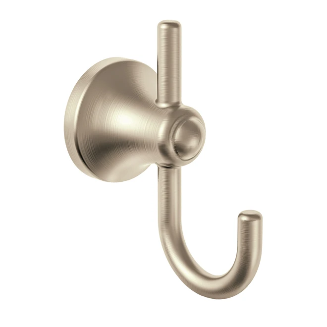 This Laia double robe hook from Moen features a brushed nickel finish that brings the warm look of stainless to your bathroom. The mounting system simplifies installation. Limited lifetime warranty.
