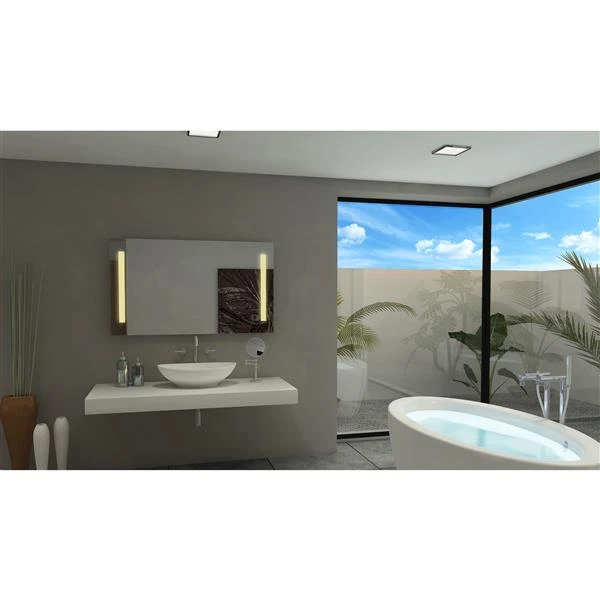 Make sure your bathroom cabinet has the ideal lighting with this Verano rectangular illuminated mirror. A 110 V wiring is necessary to power its dimmable light which boasts a 120,000-hour lifetime. This mirror can be hung horizontally or vertically, is UL certified and comes with a 5-year limited warranty.