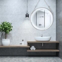 HomCom Kleankin 23.5-in Lighted LED Fog Free Rose Gold Round Bathroom Mirror