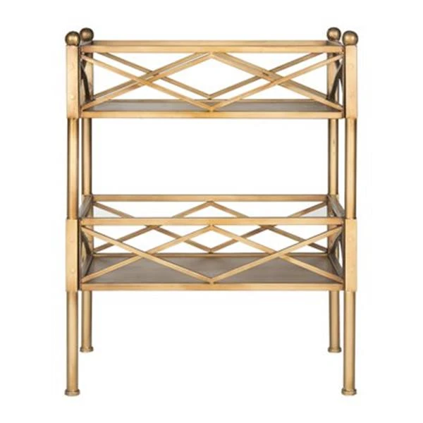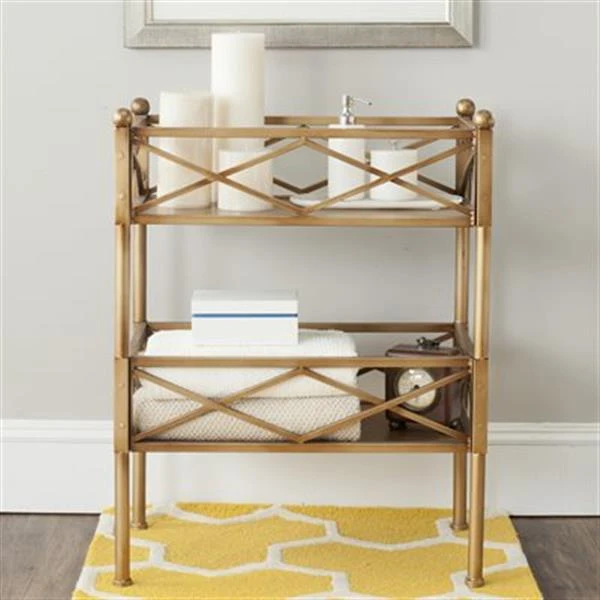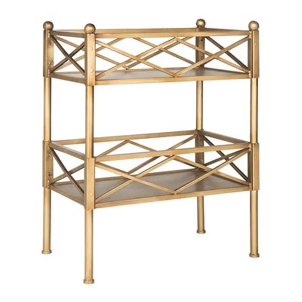 Space-saving and elegant, the Jamese storage shelves are as practical as they are good-looking. Crafted of iron, they are ready to display your favorite collectibles. This cross-cross shelf design with finial tops is a classic.