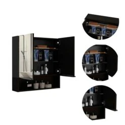 FM Furniture Ozark 23.6-in X 24.6-in Black Mirrored Rectangle Medicine Cabinet